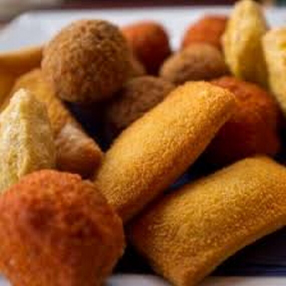 Geniet van onze heerlijke, kwaliteitsvolle snacks in royaal formaat, prachtig gepresenteerd op een stijlvolle schaal met een selectie van smaakvolle sauzen.